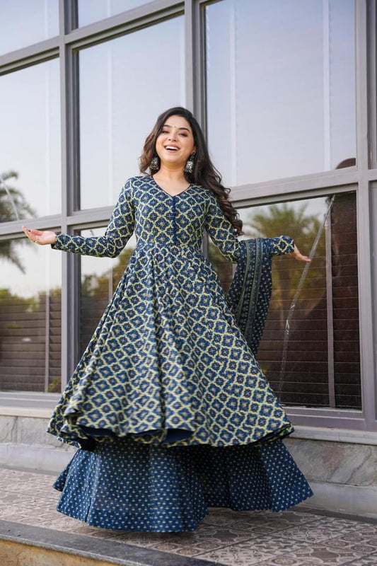 Care: DRY CLEAN Note:- 5-7% Colour variations may occur due to different screen resolutions Dress Fabric: Cotton“ Length: 48”...