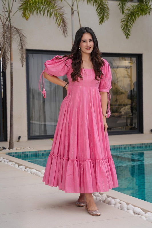 Care: DRY CLEAN Shipping Info: 15-18 Working Days Dress Fabric: Cotton Length: 48“ Front Neck: 7" Back Neck:...