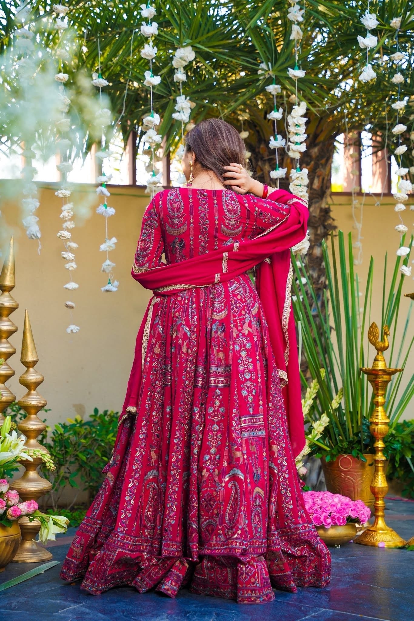 Areeba Pink Embroidered Georgette Wear Maxi Set