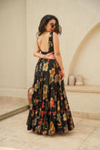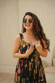 Black floral Designer Rayon Fit & Flare Maxi Gown Dress