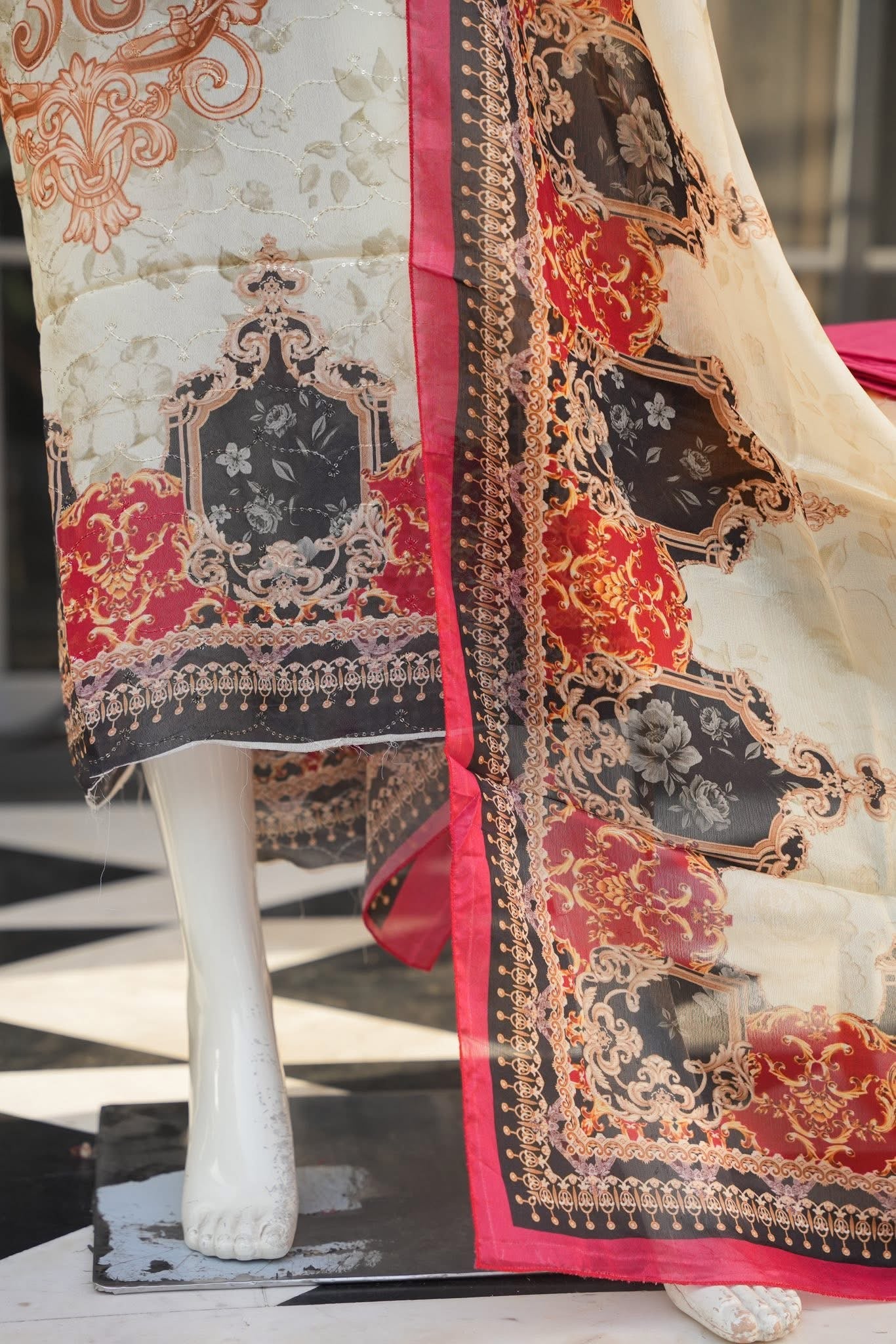 Indulge in elegance with a 2.5-meter unstitched top and bottom, perfectly complemented by a 2.5-meter coordinated dupatta