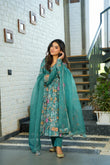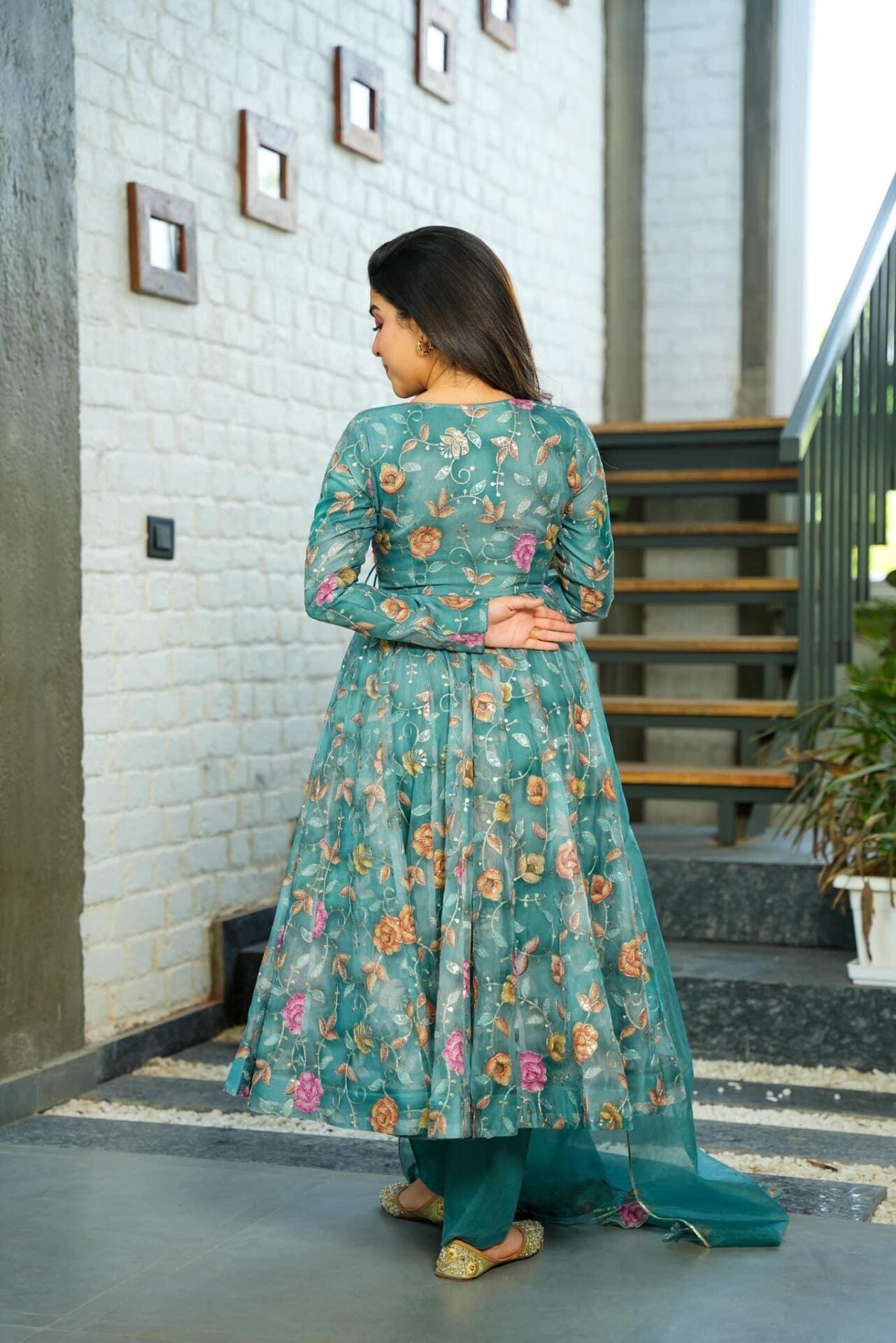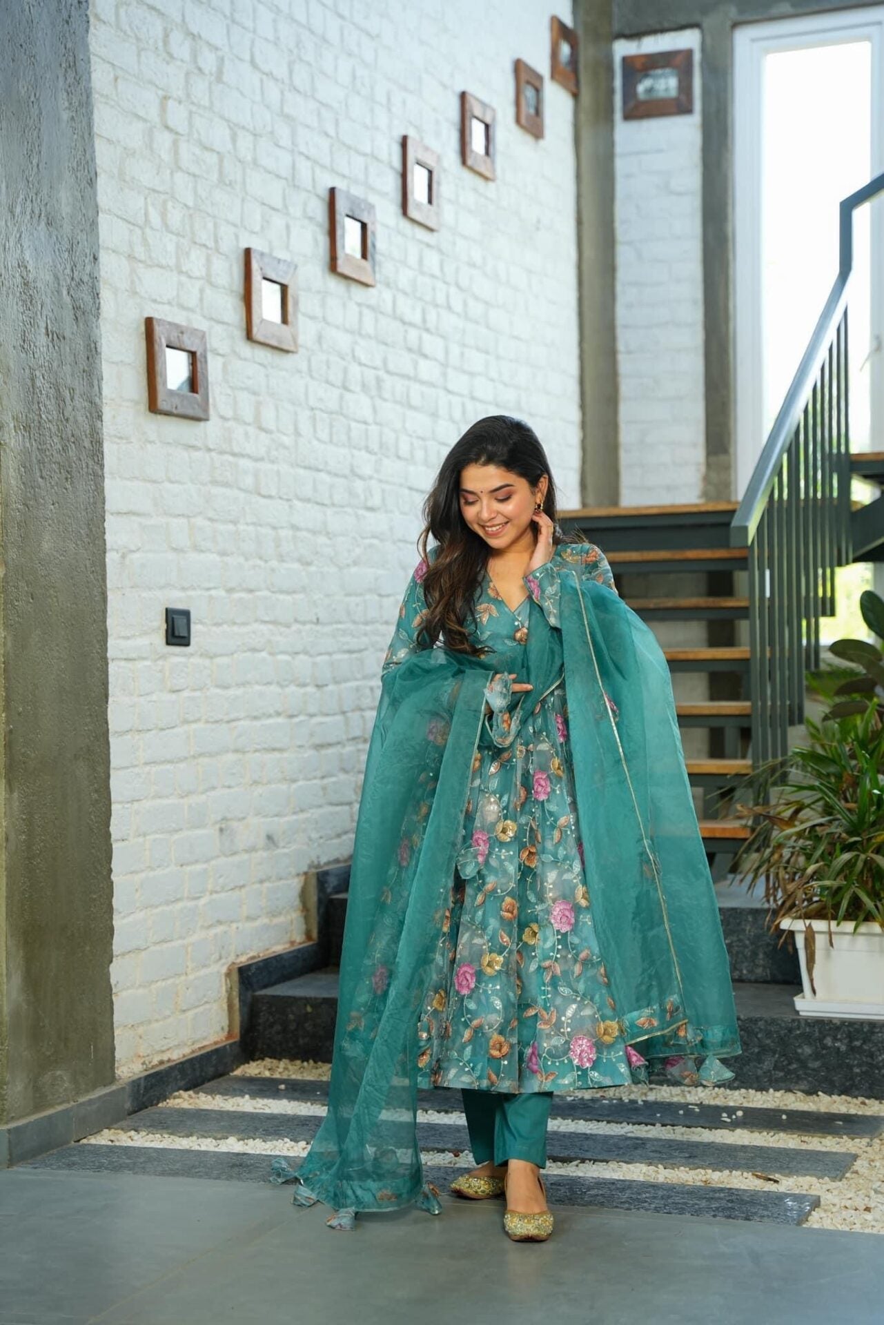 Elevate your wardrobe with our stunning green organza embroidered suit set, a perfect blend of elegance and sophistication. This luxurious ensemble features a beautifully crafted organza kurta, adorned with intricate embroidery that adds a touch of refinement to the outfit. The soft, translucent organza dupatta complements the kurta with matching embroidery, creating a harmonious and graceful look.