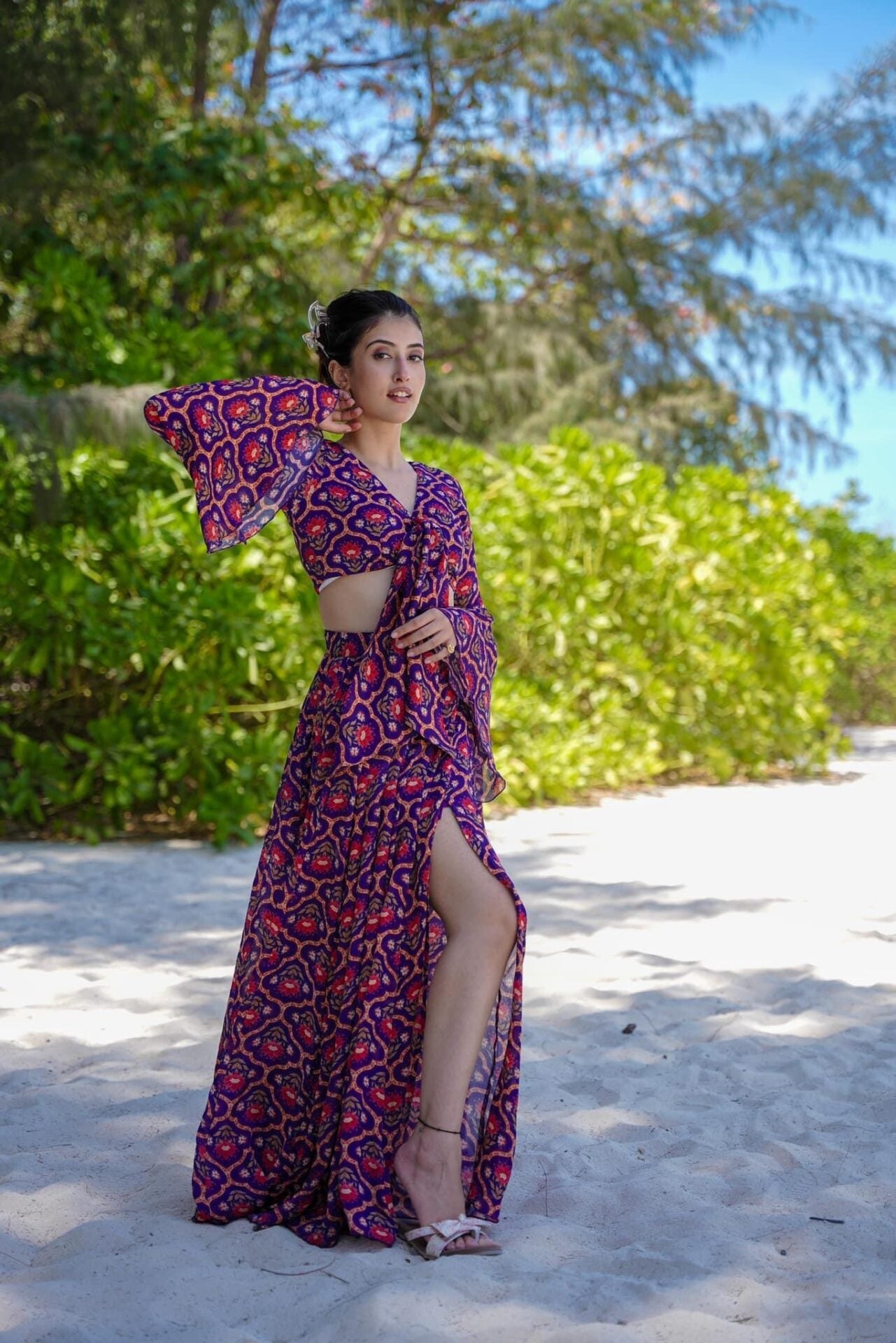 Purple Graceful Printed Georgette Slit Chic Co Ord Set