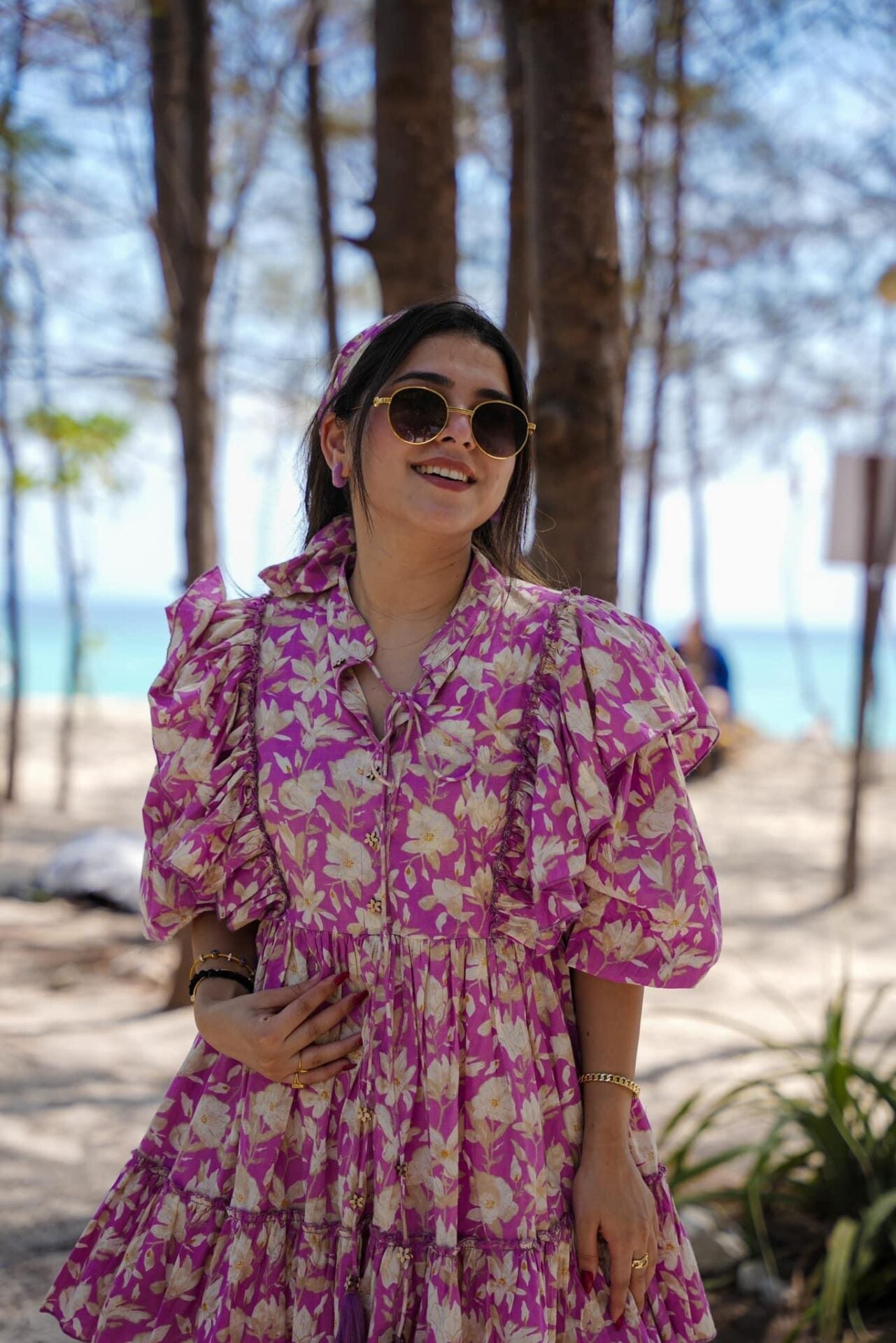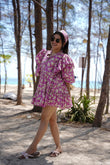 Lavender Designer Floral Lily Cotton Midi Dress