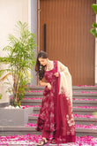 Maroon Blossom Organza Anarkali Suit Set