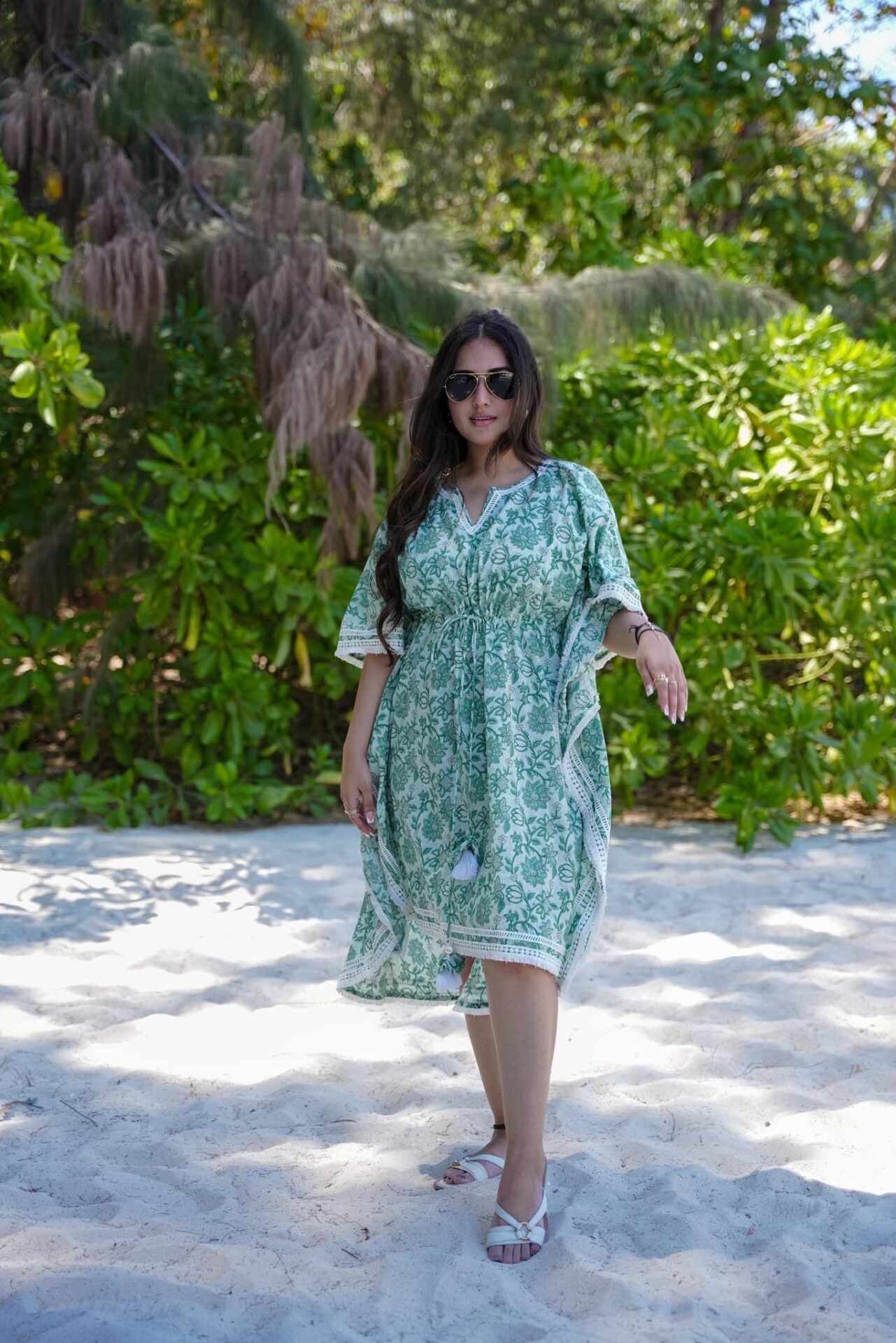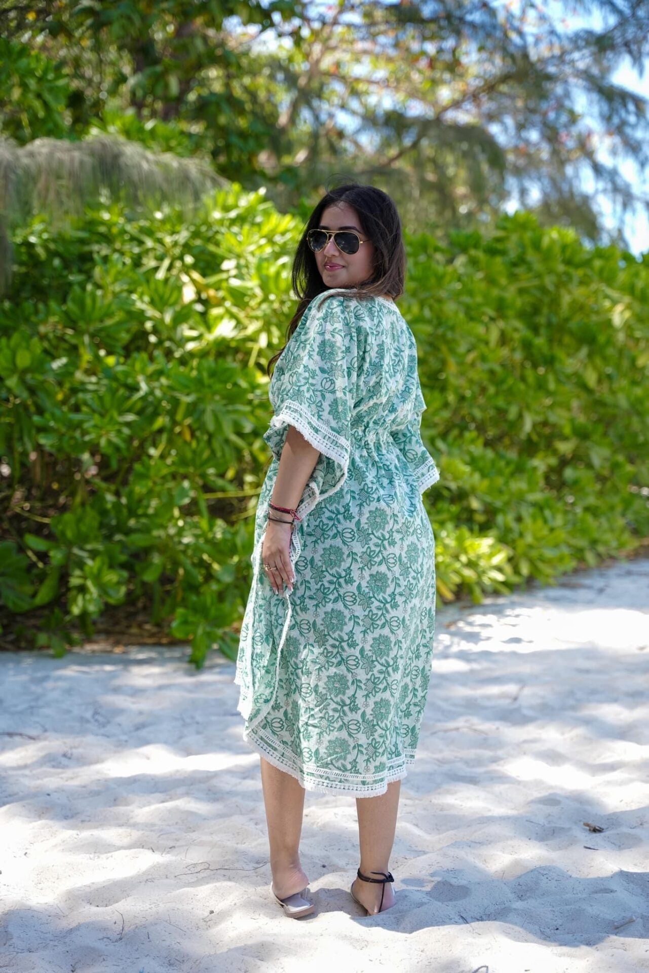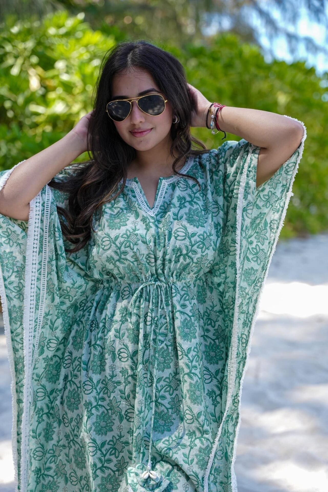 Minty Green Mirage Printed Kaftan Cotton Dress