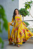 Pale Gold Cotton Anarkali Suit Set with Dupatta