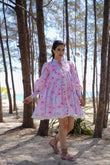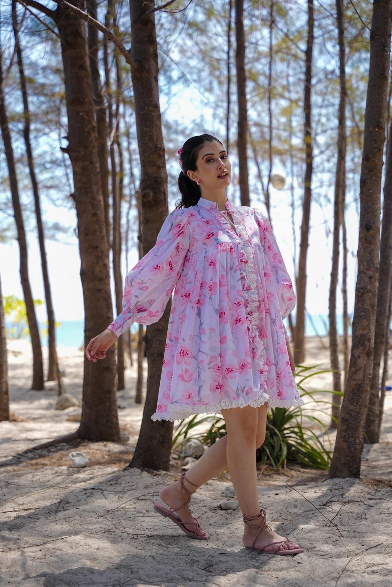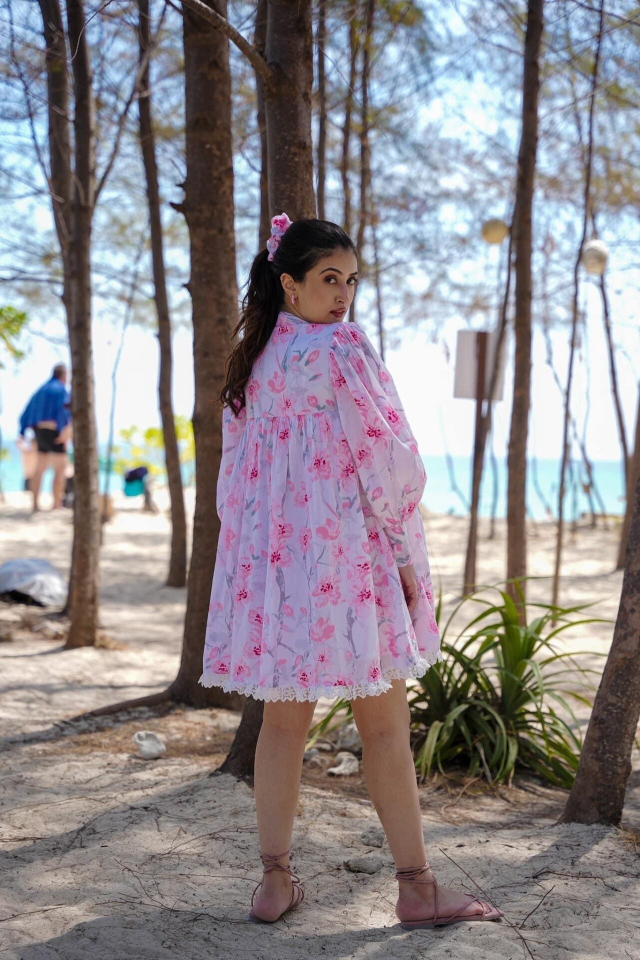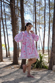 Rosebud Floral White Puff Sleeves Dream Cotton Stylish Dress