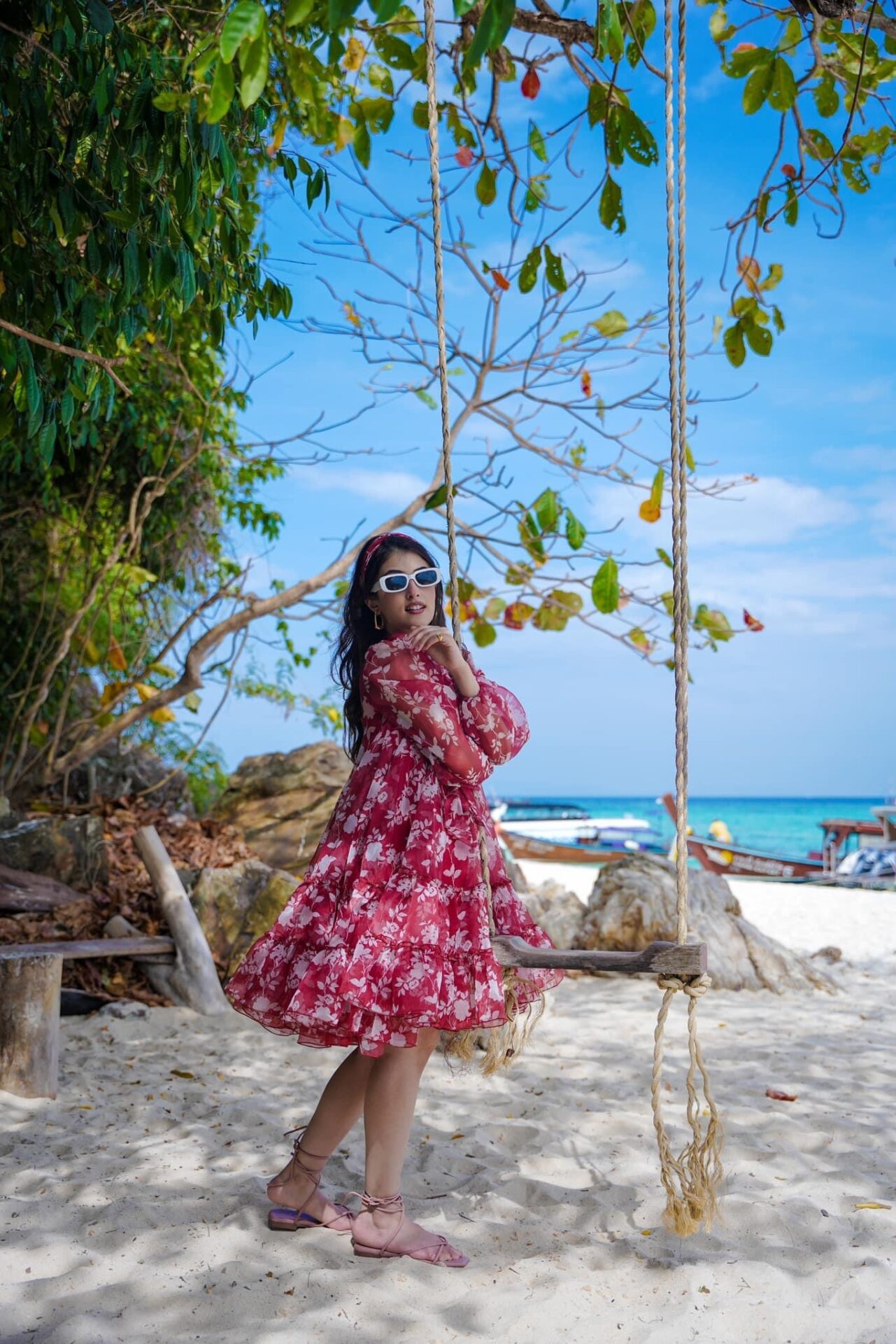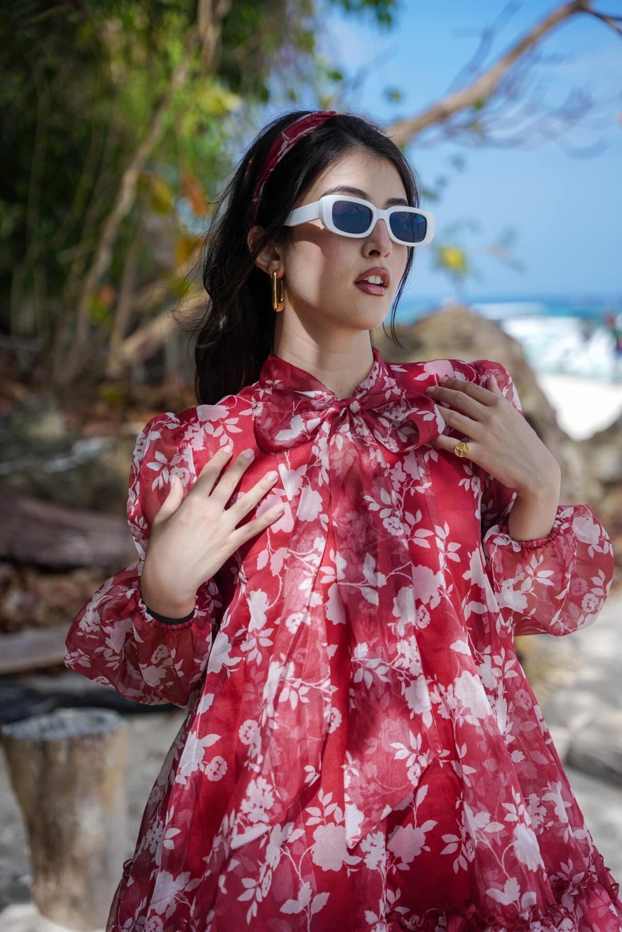 Red & White Ruby Organza Knee-Length Reverie Dress