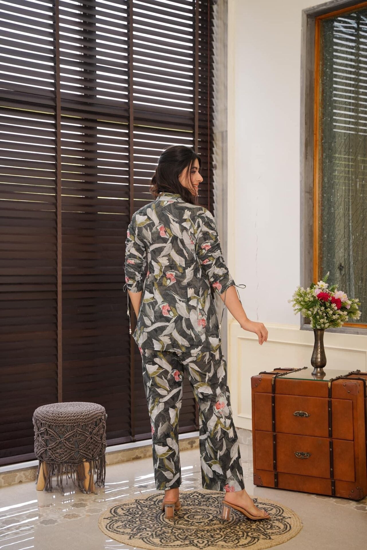 Grey & White Serene Cotton Duo Co Ord Set For Women